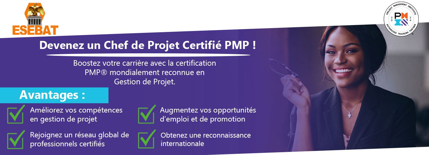 Programme PMP ESEBATVers l'Excellence en Gestion de ProjetObjectifs Visés par la Formation- Acquisition de Compétences : Former les participants aux meilleures pratiques de gestion de projet selon le PMI.